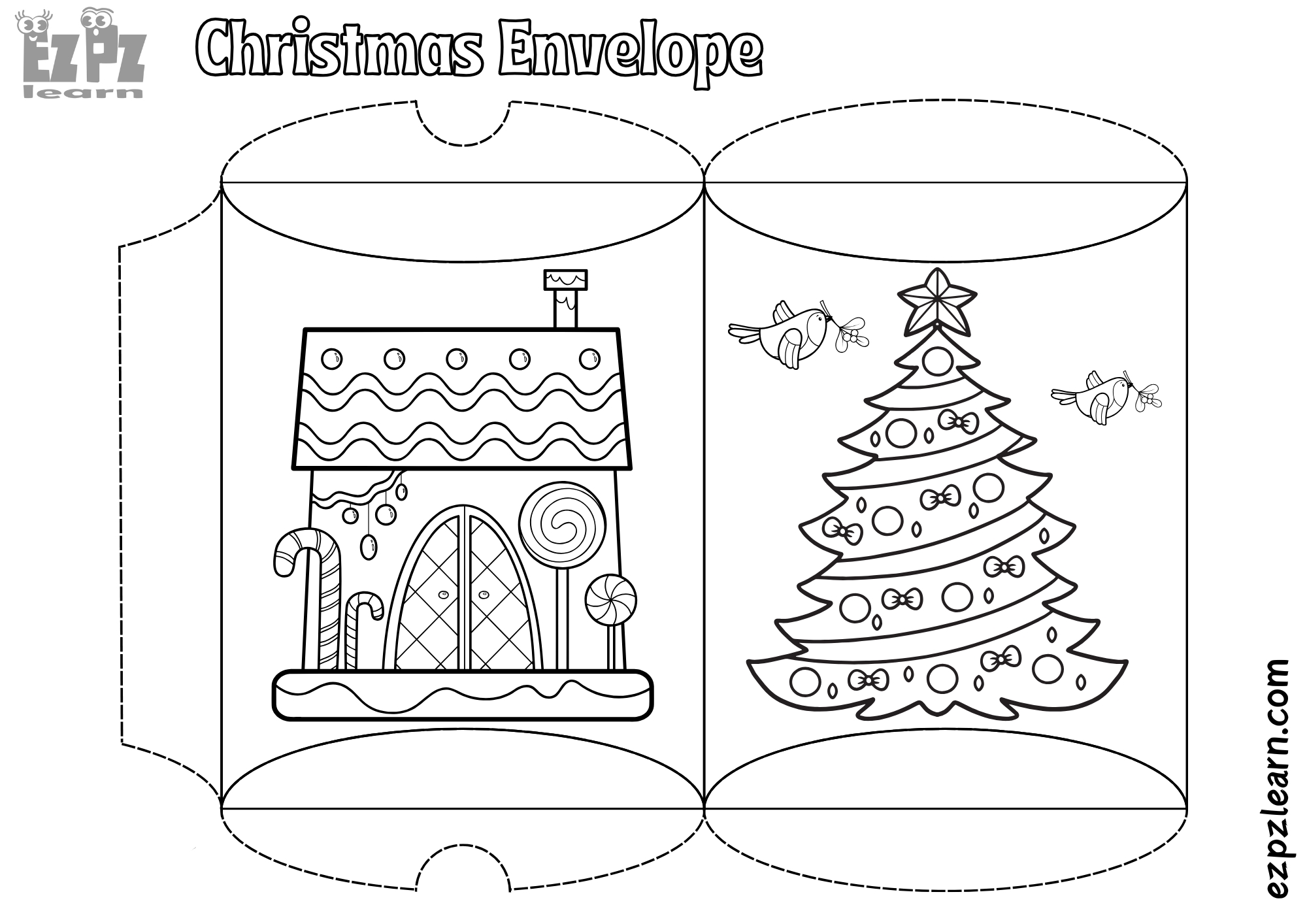 Gingerbread House and Christmas Tree Christmas Envelope Cut and Color Craft