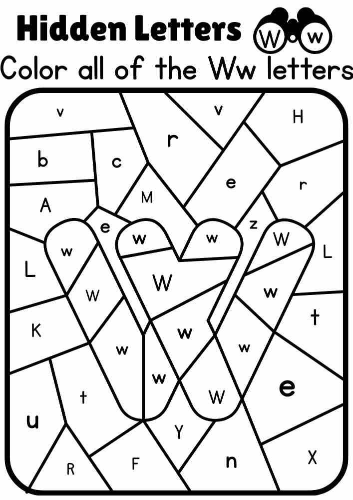 w Lower Case Letter. Color all of the Ww letters and find the hidden letter. Interactive Coloring Activity. Online Coloring Activity.
