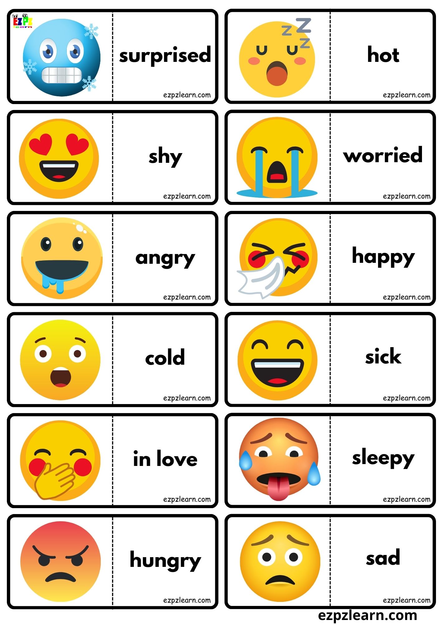 Feeling Vocabulary Dominoes Matching Game for Kids and English Language Learners Free PDF Download
