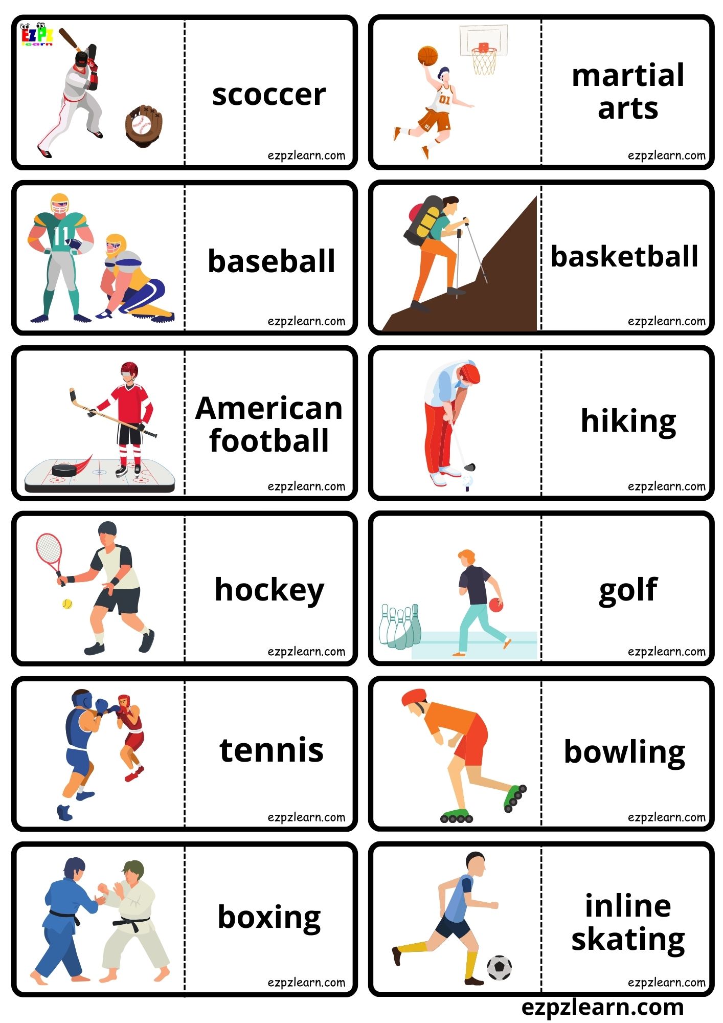 Sports Vocabulary Dominoes Matching Game for Kids and English Language Learners Free PDF Download Set 2