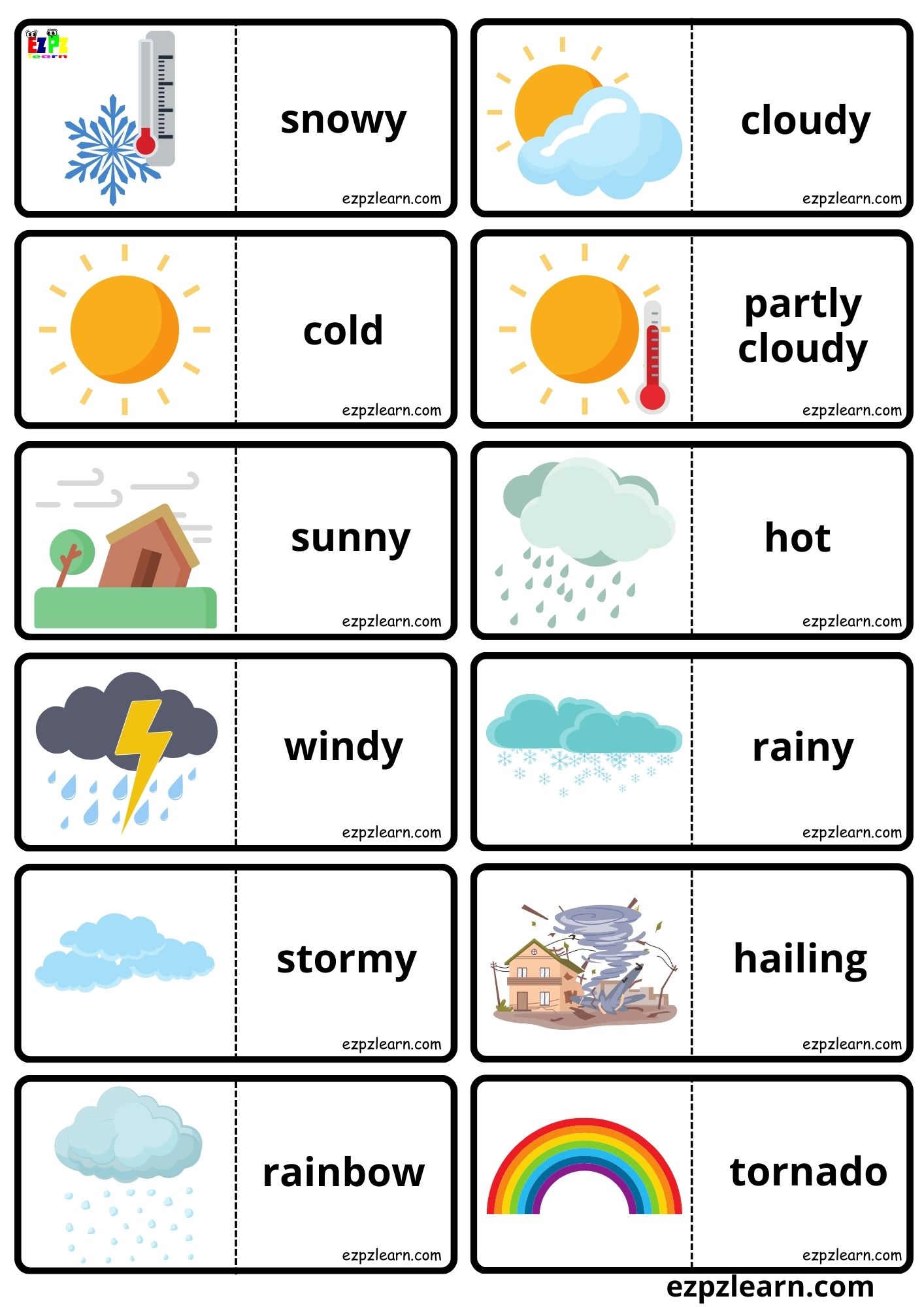 Weather Vocabulary Dominoes Matching Game for Kids and English Language Learners Free PDF Download