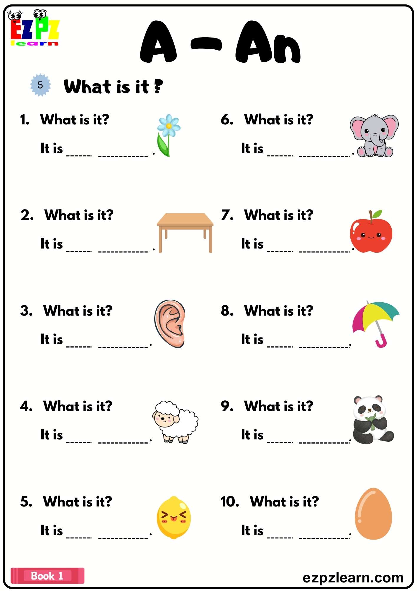 Articles A,/An Complete the Sentences Grammar Worksheet Book 1
