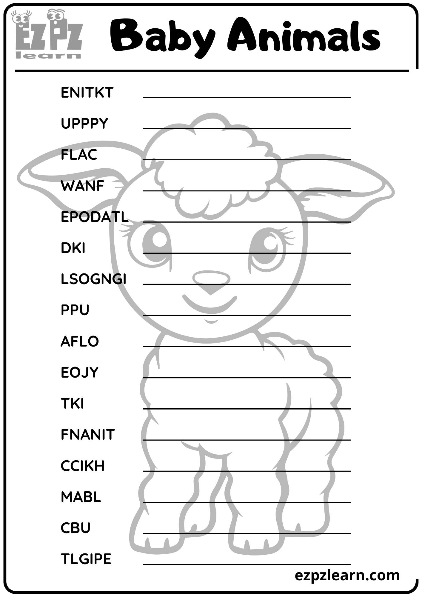 Baby Animals Word Scramble 16 Vocabulary Words Free Downloadable PDF
