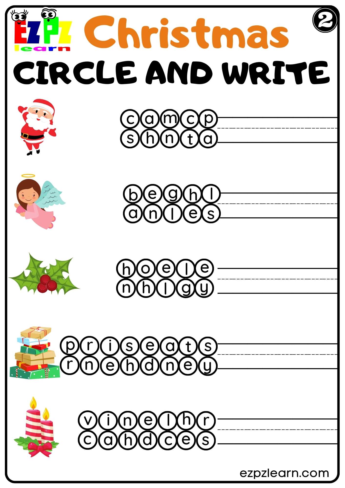 Christmas Holiday Circle and Write Worksheet For Kids K5 and ESL Free PDF Download Set 2