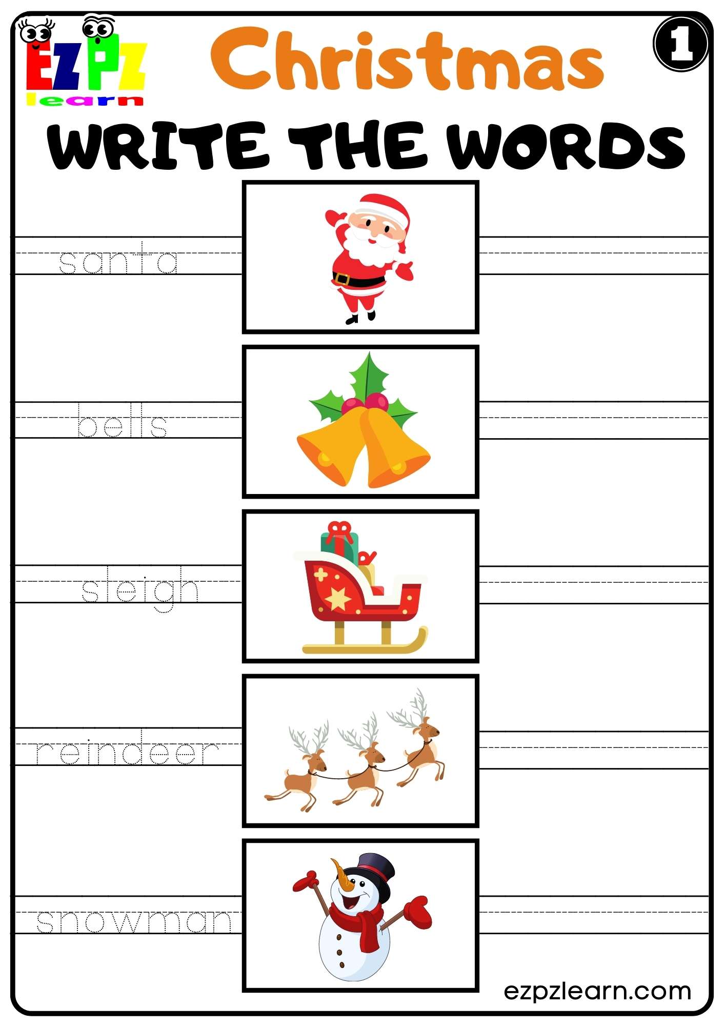 Christmas Holiday Write the Words Set 1 For Kids K5 and ESL Free PDF Download