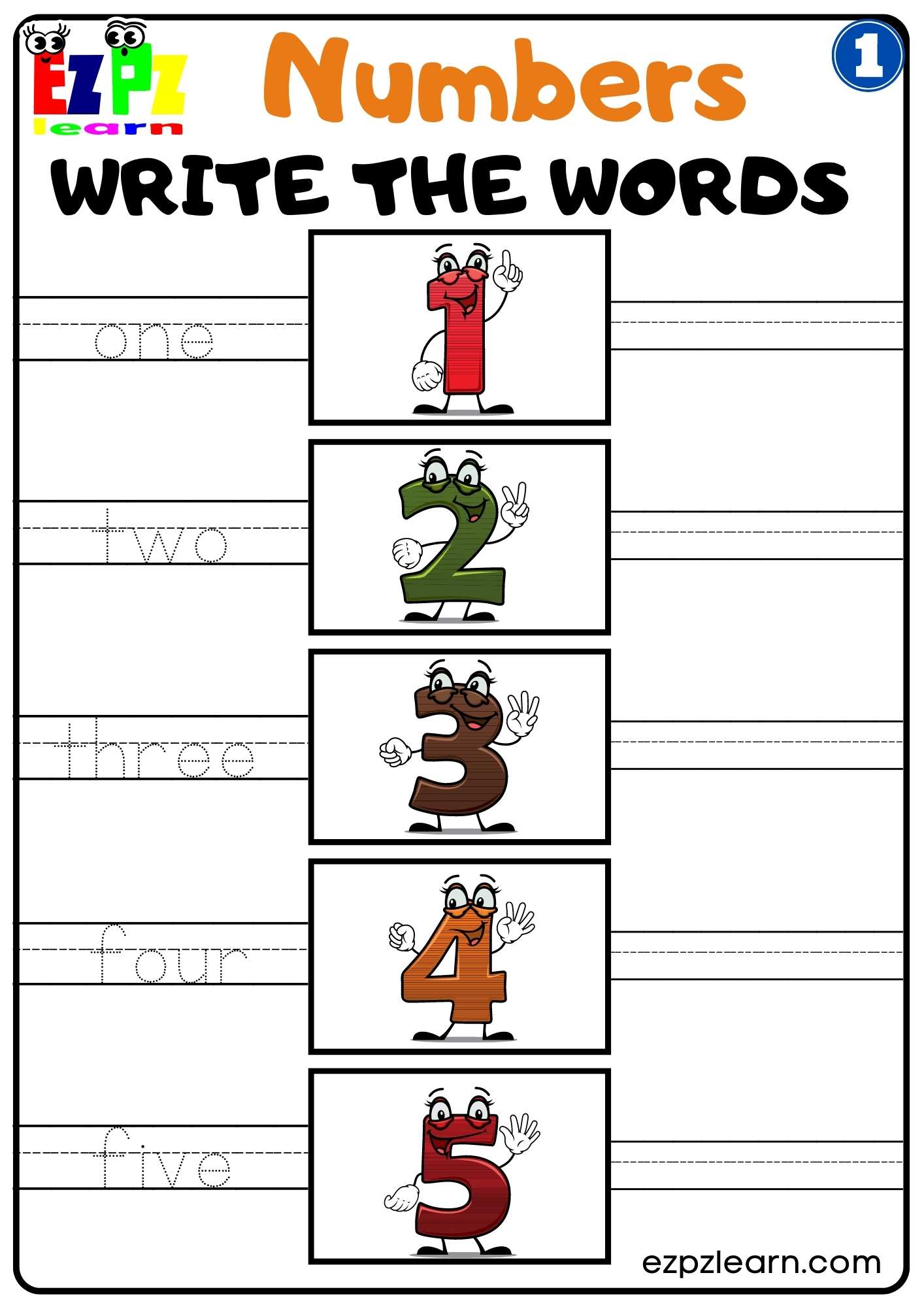 G1 Numbers Write the Words Worksheet for Kindergarten K5 and ESL Students Free Download