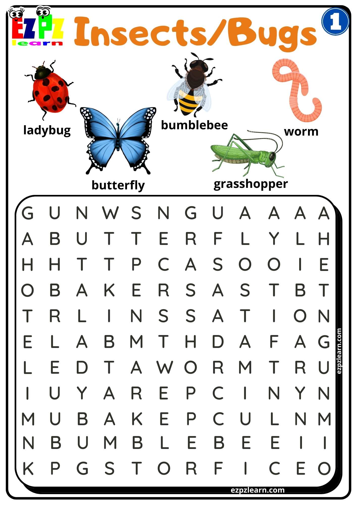 Group 1 Insects and Bugs Word Search Free PDF Download For Teachers and Parents