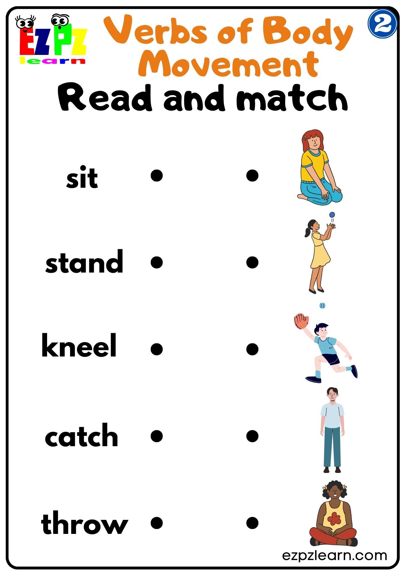 Group 2 Verbs of Body Movement Read and Match free PDF Download for Homeschool and ESL Teachers