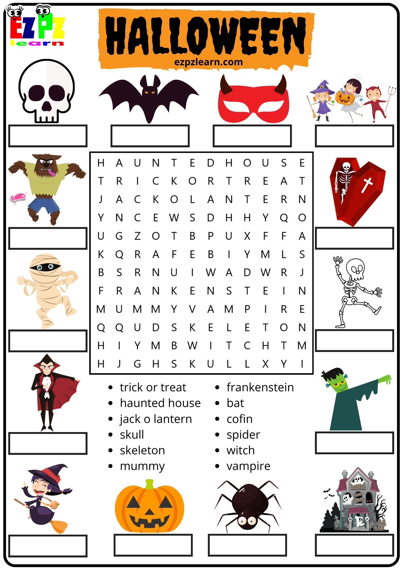 Halloween Holiday Word Search and Match the Words Activity for Kids and English Language Learners PDF