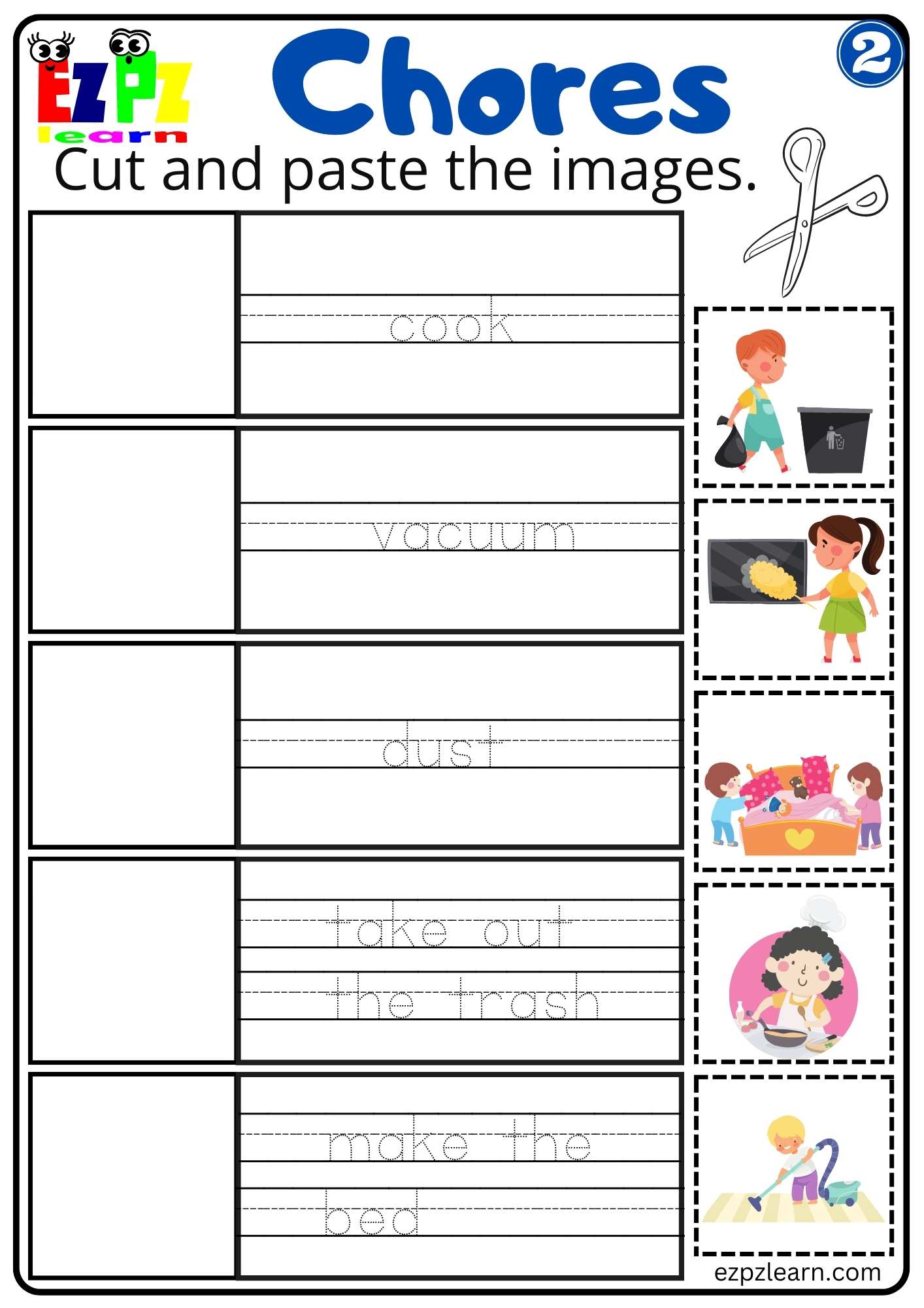 Household Chores Vocabulary Cut and Paste Worksheet For Children and ESL Students Download Free Group 2