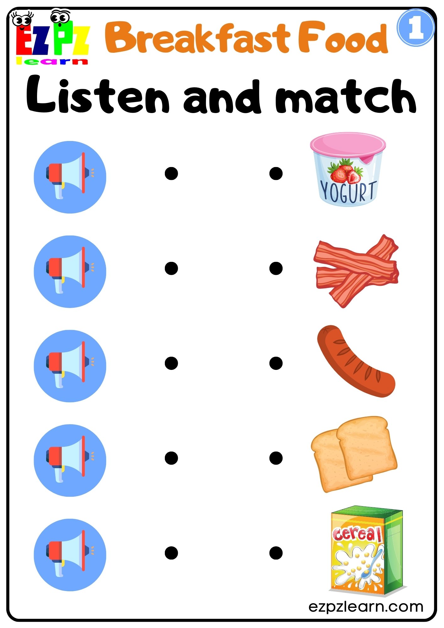 Interactive Worksheet for Breakfast Food Listen and Match the Correct Images Activity for Kids K3 G1