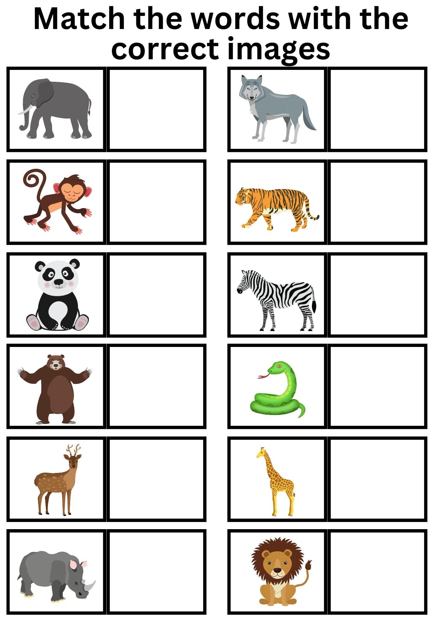 Interactive Worksheet Wild Animals Puzzle Match Worksheet for Kids