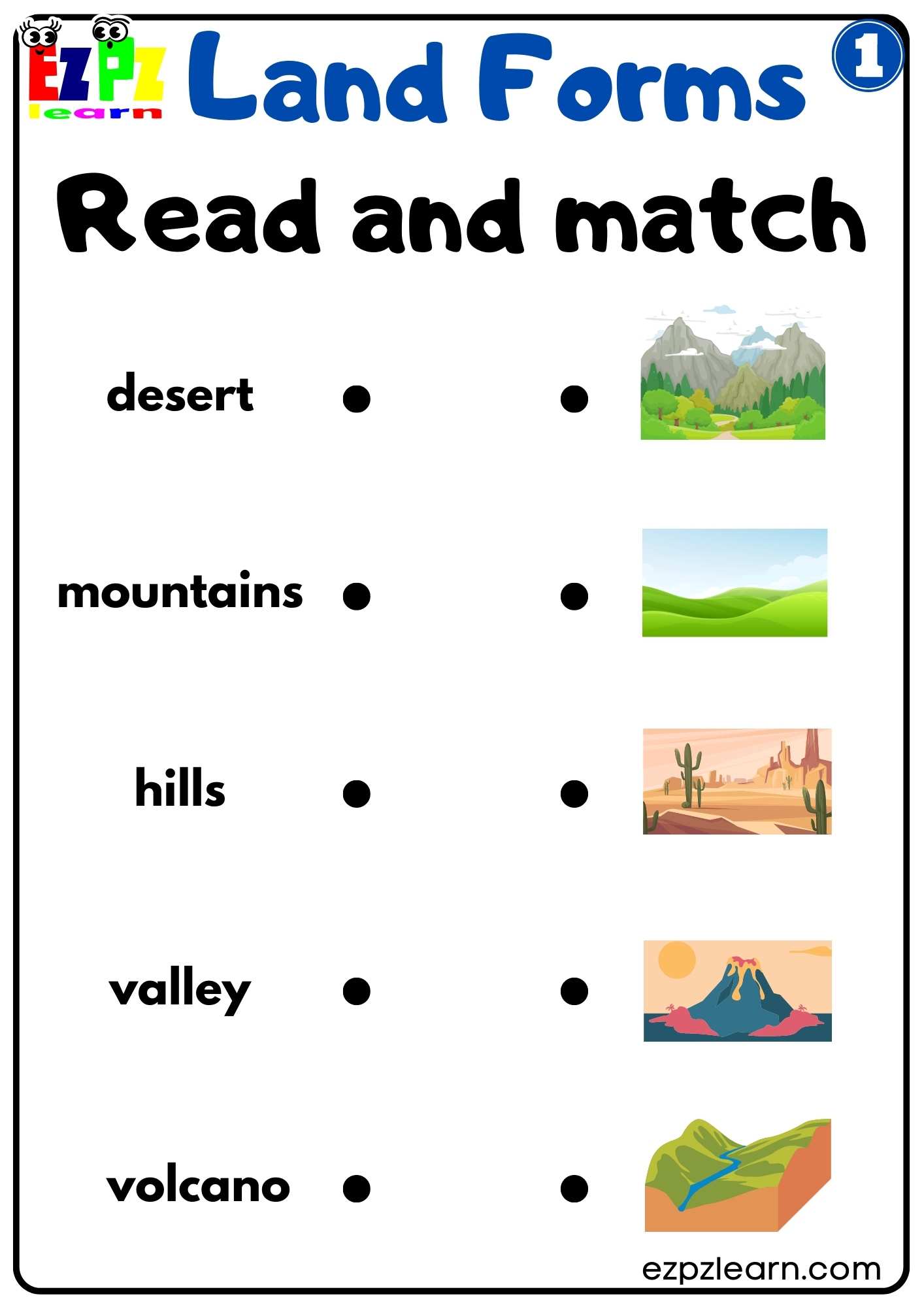 Land and Water Forms Read and Match Activity Free PDF download set 1