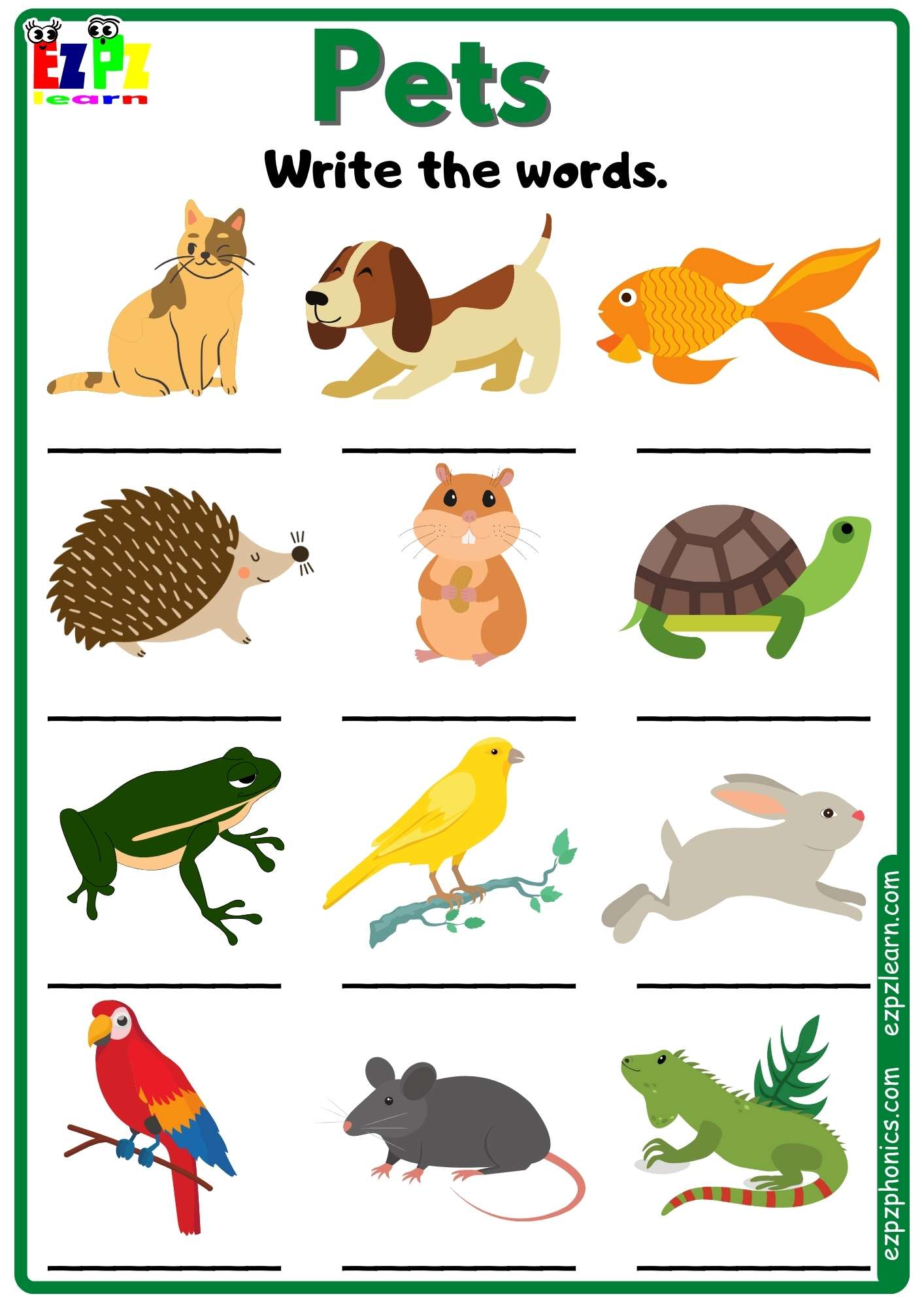 Pets Animals Vocabulary Write the Words Free PDF Download