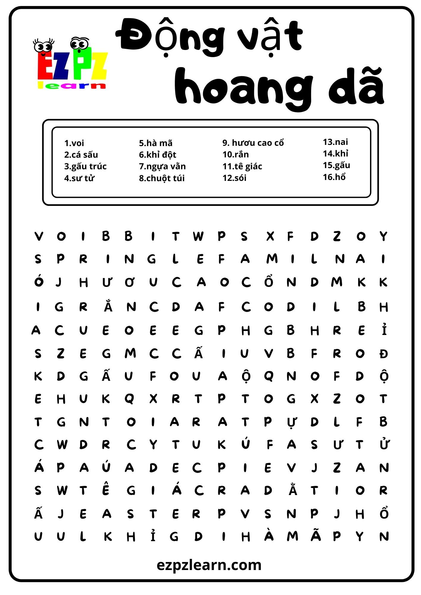 Wild Animals Word Search